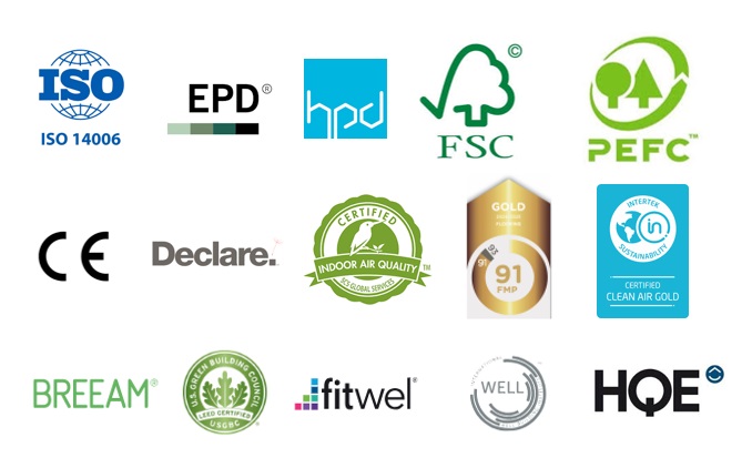 Les certifications EPD, HPD, Declare vous aideront également à obtenir les labels Breeam, Leed, Fitwell, Well et HQE.